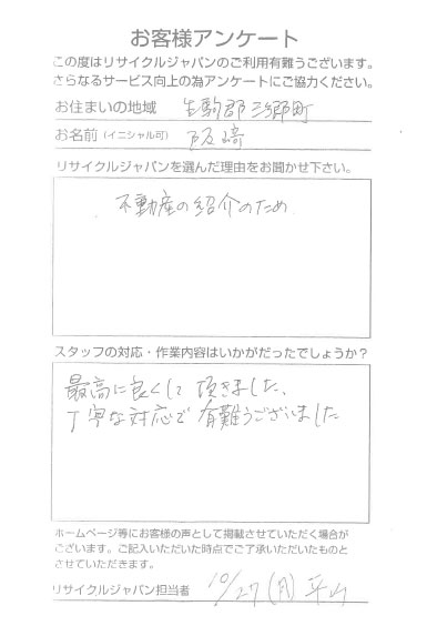 【お客様の声】奈良県生駒郡 引越しに伴う不用品の引取り口コミ