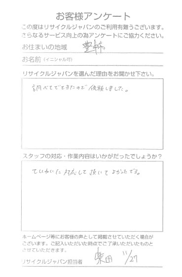 この度はリサイクルジャパンに不用品の引取りのご依頼ありがとうございました。