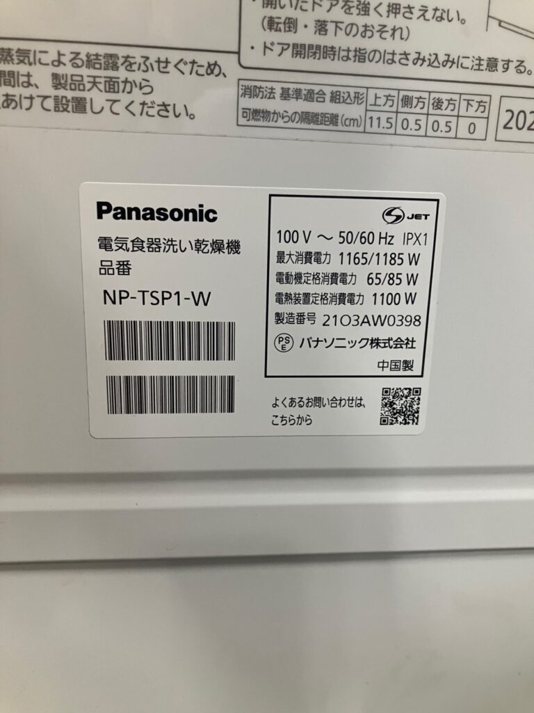 Panasonic 食器洗2021年製 ※マンション12階エレベーターでの搬出 買取金額¥5,000
